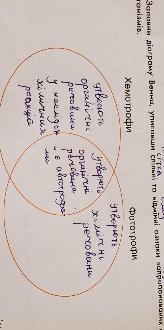 Заповни діаграму Венна, уписавши спільні та відмінні ознаки запропонованих організмів.