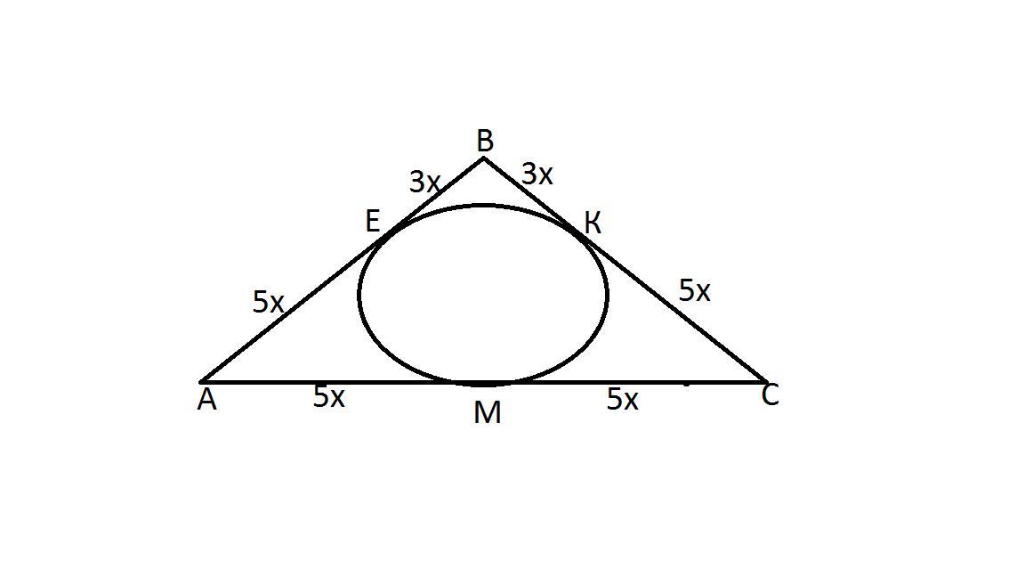 АВ=ВС=5х+3х=8х см; АС=5х+5х=10 см.