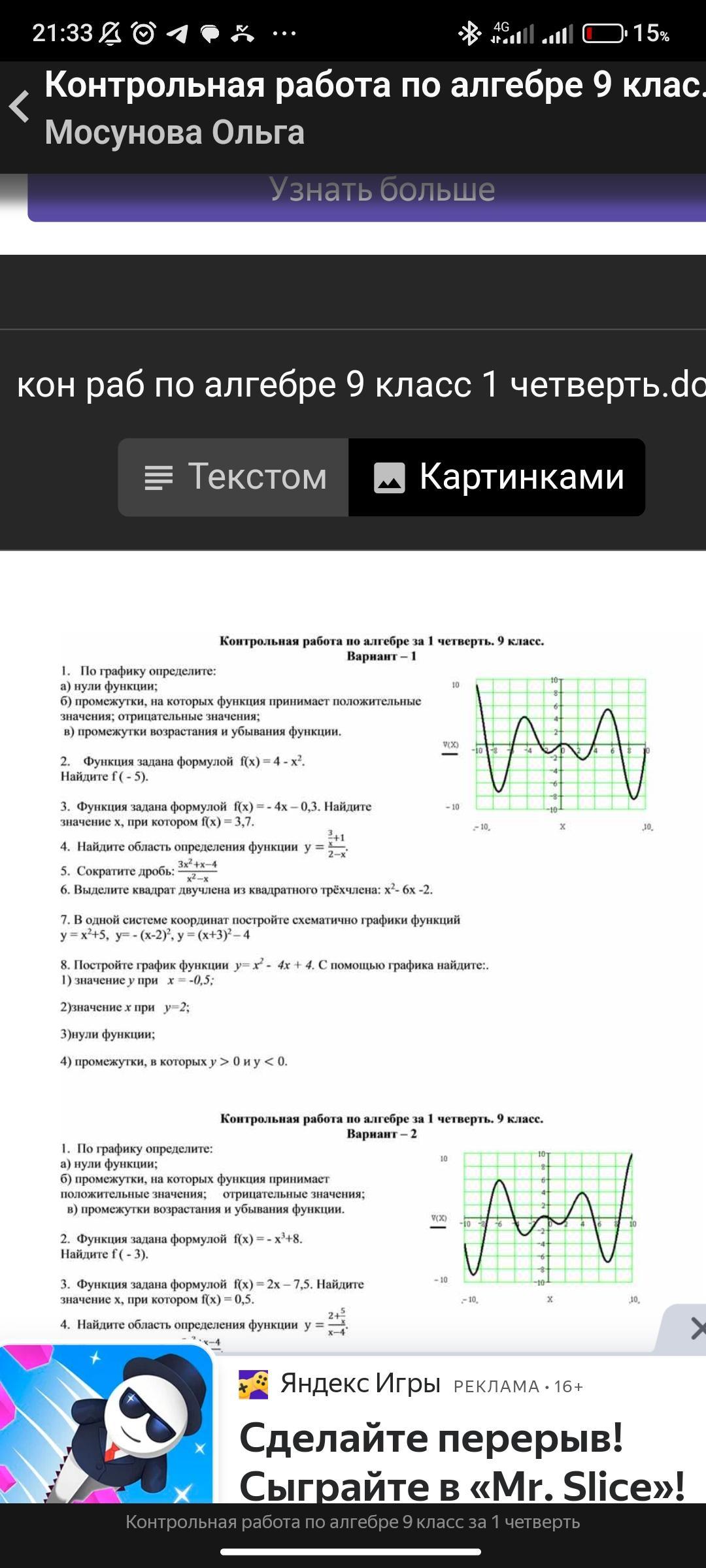 б) промежутки, на которых функция принимает положительные значения; отрицательные значения;