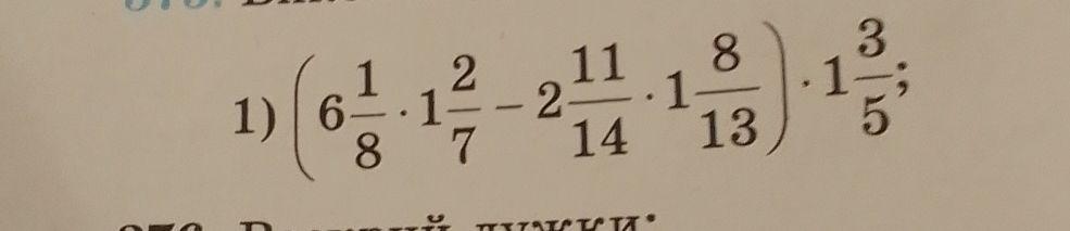 (6 1/8 · 1 2/7 - 2 11/14 · 1 8/13) · 1 3/5 = (49/8 · 9/7 - 39/14 · 21\13) · 8/5 =