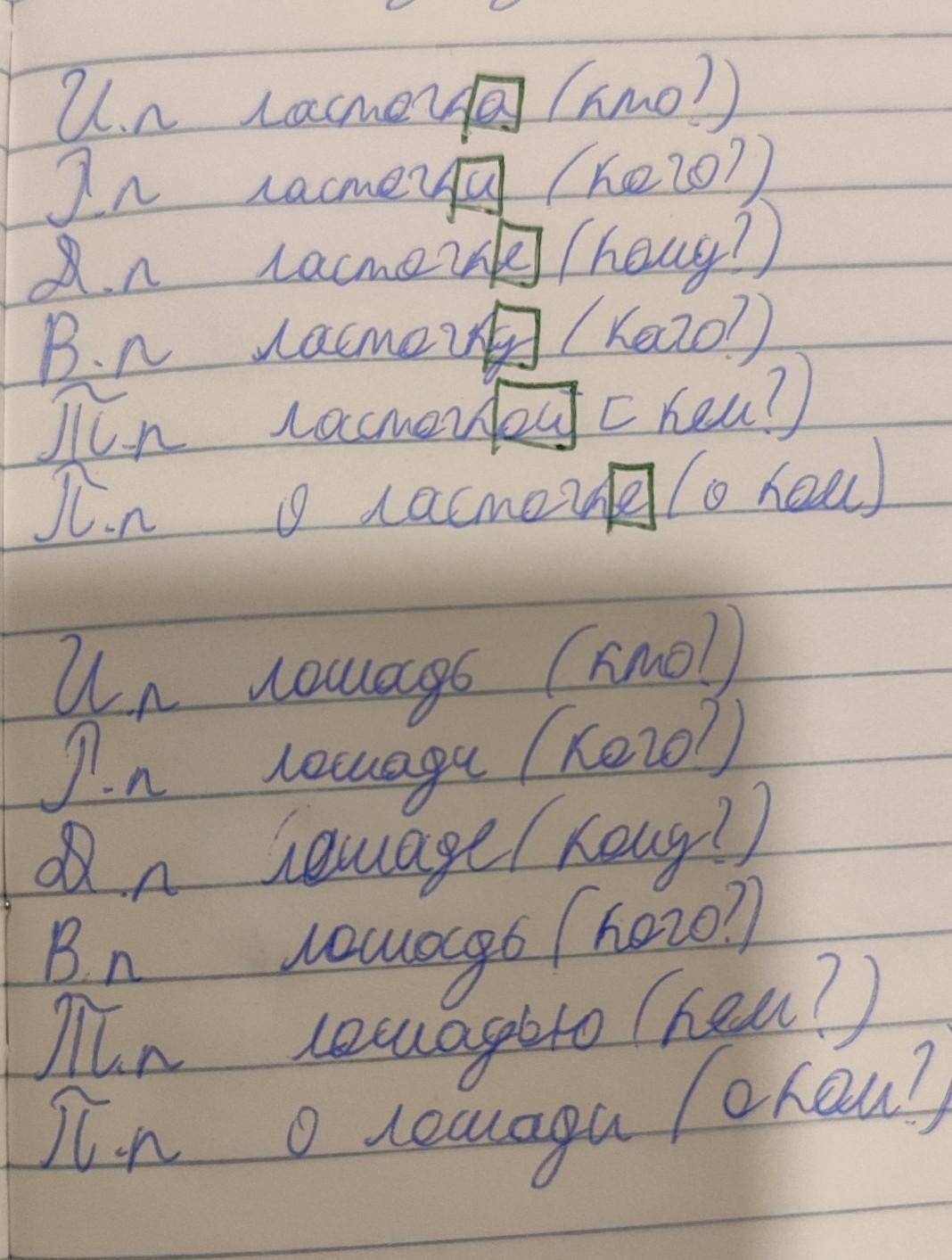Винительный падеж: кирпичи, ночи, солнца, медведей, ласточек, лошади