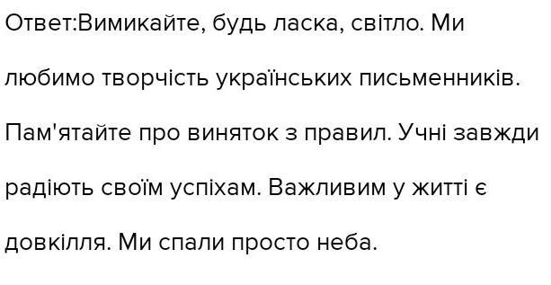Ми любимо творчість українських письменників і поетів. Пам'ятайте про виключення з правил. Ми спали від відкритим небом.