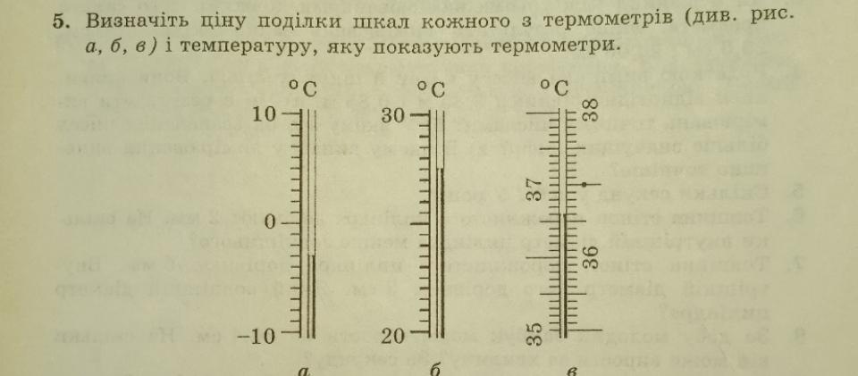 чтоб найти цену деления, нужно взять две соседние цифры термометра (вычесть из большего меньшее) и разделить на количество делений между ними.