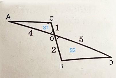 S1 / S2 = (1/2 • 1 • 4 • sin AOC) / (1/2 • 2 • 5 • sin BOD) =