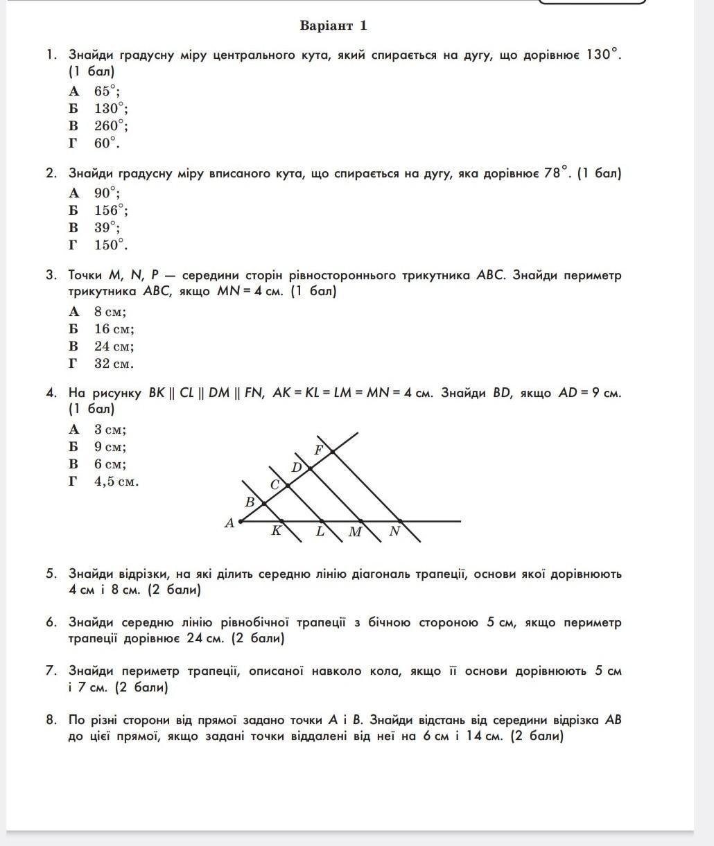 МК||ВС ; МК=ВС:2=4:2=2 см