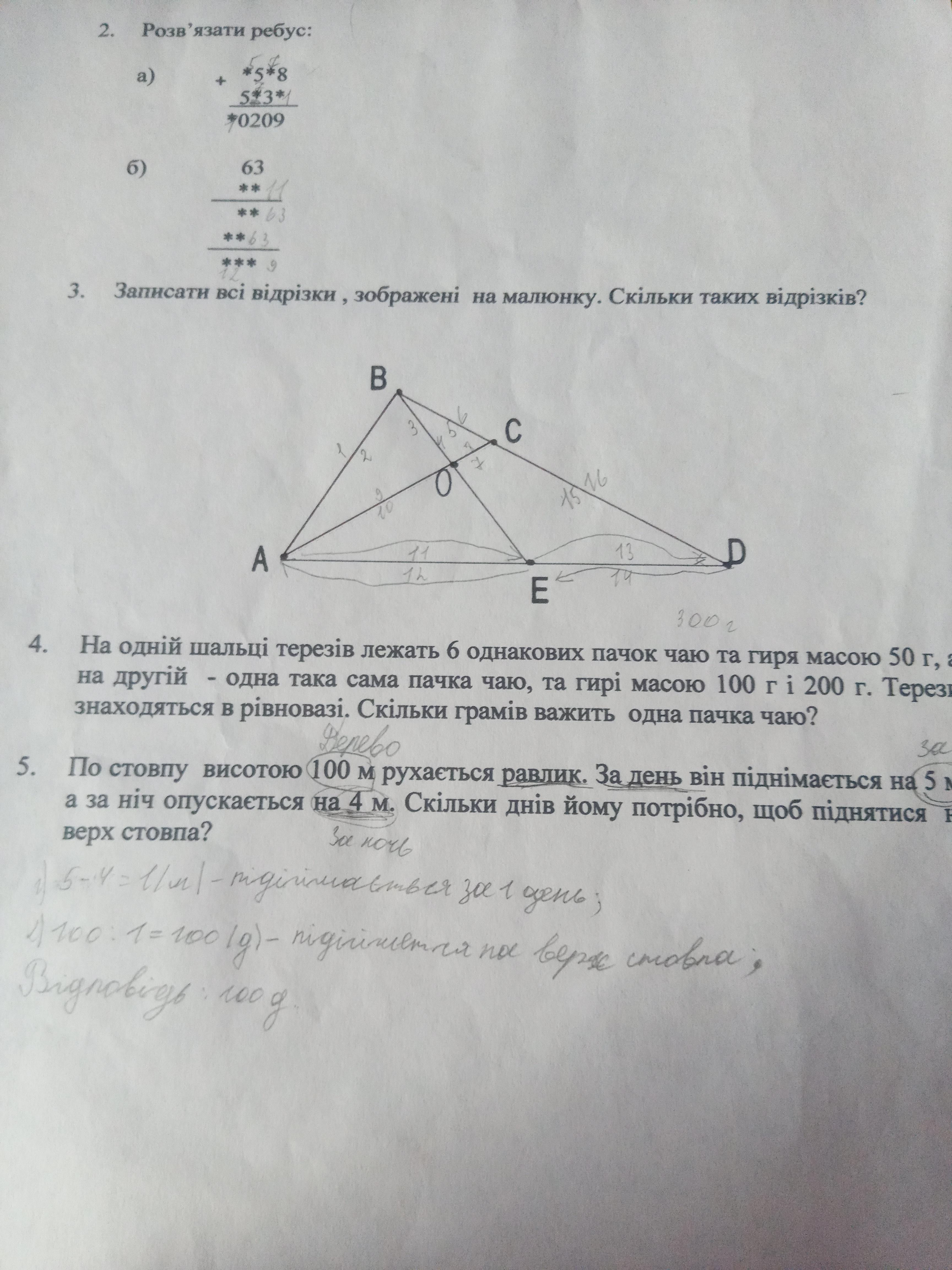 4) нам дано що 6 пачок чаю та 50 грн гиря дорівнюють одній пачці чаю та гирями масами 100 та 200 гр. Нехай одна пачка чаю буде важити х, тоді шість пачок - 6х. Складемо рівняння: