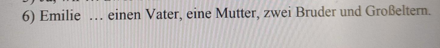 Emilie hat einen Vater, eine Mutter, zwei Bruder und Großeltern.