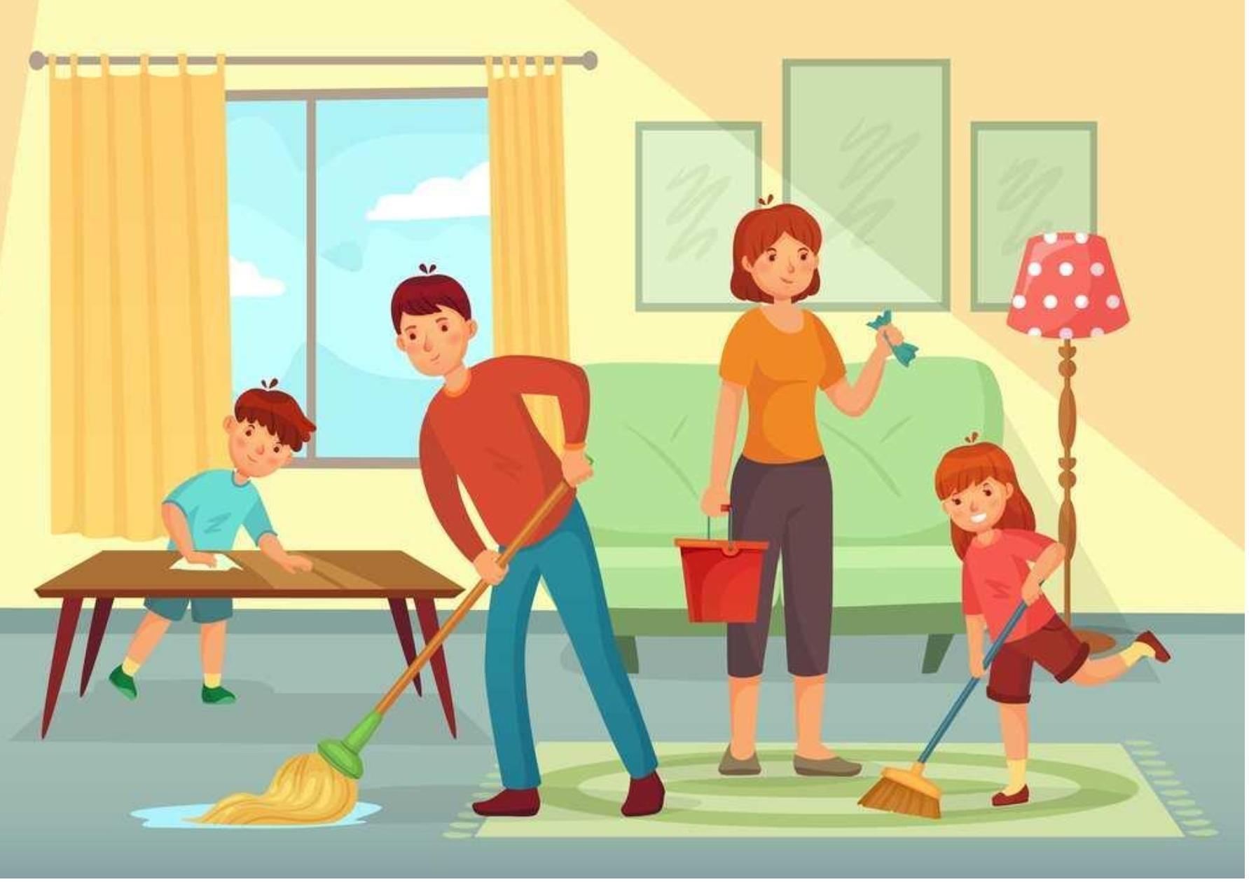 Б. Рассмотрите иллюстрацию. Как вы думаете, чем занимается семья, изображенная на картинке? Как распределяются обязанности в вашей семье? Расскажите, что входит в ваши обязанности. Ответ должен содержать не менее 5-ти предложений (25 баллов).