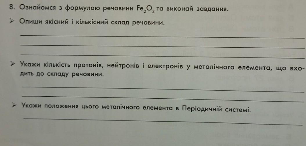 кількісний: 5 (2 атоми феруму, 3 атоми оксигену)