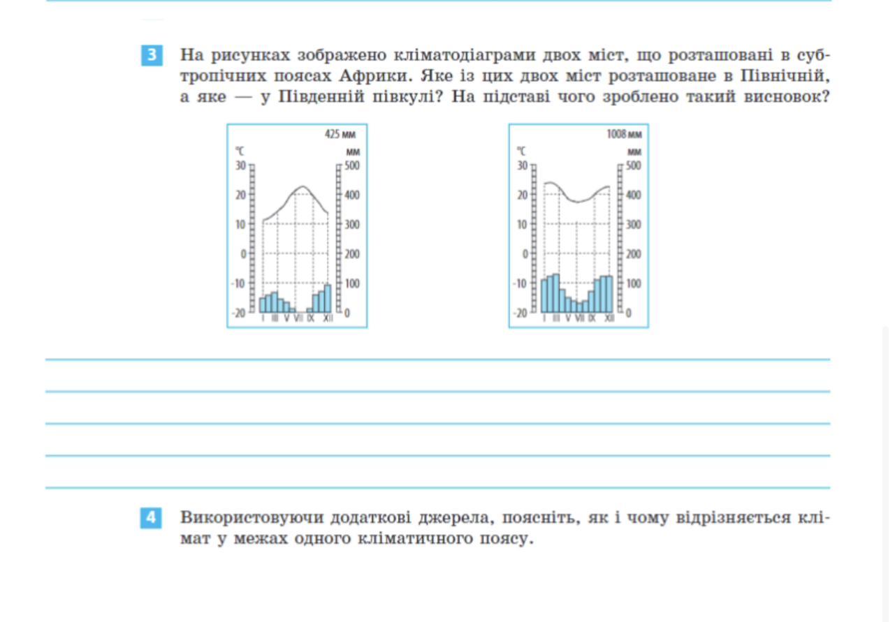 Місто з першої діаграми розташоване в Північні півкулі, бо графік річного ходу температури випуклий вгору і t° січня (+11°С) < t° липня (+24°С).