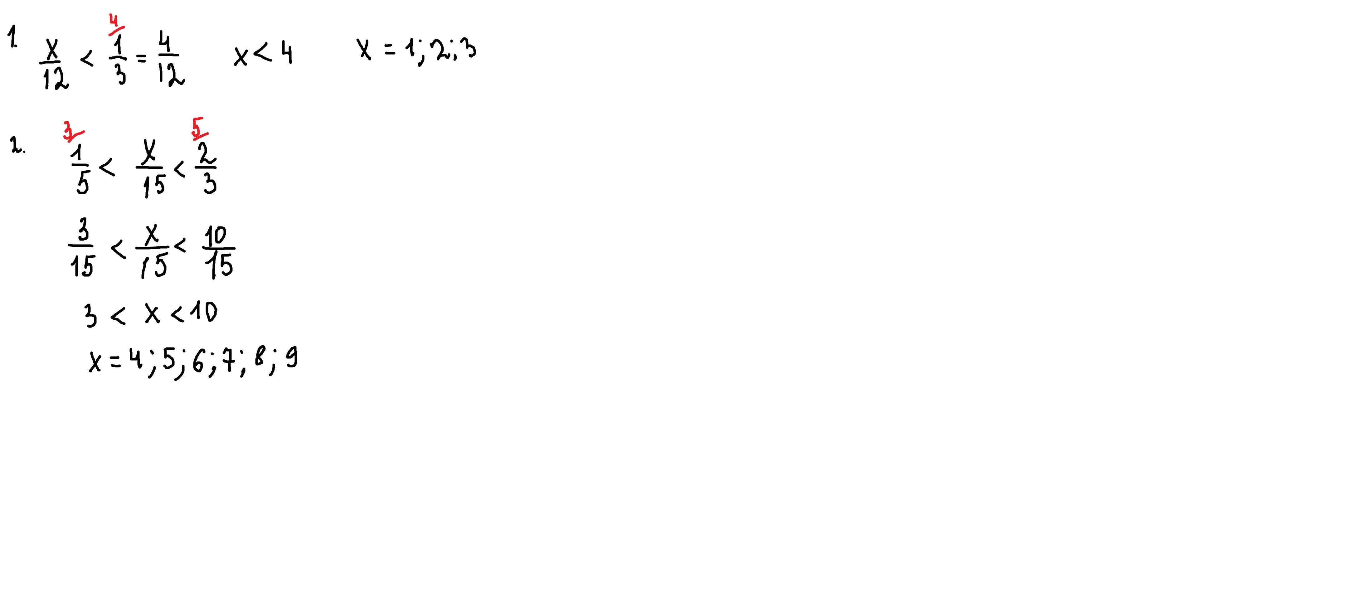 знайдіть усі натуральні значення x при яких є правильною нерівність: 1) x/12< 1/3