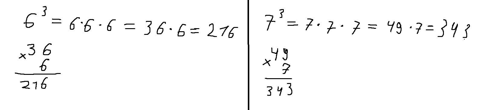 (Возведение 6 и 7 в степень 3 более подробно продемонстрировано на фото)