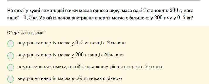 Отже, правильна відповідь: "внутрішня енергія масла у 0,5 кг пачці є більшою".