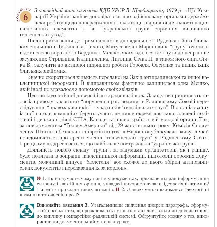 - 1. "групи, які виступають за виконання Гельсінської угоди" - для підкреслення псевдолегальності та "підривного" характеру дисидентської діяльності.