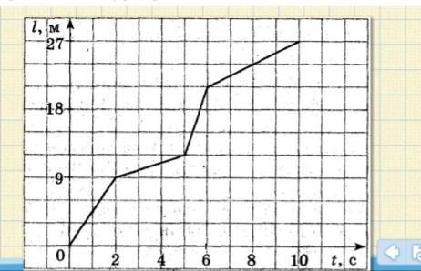 2. За графіком залежності шляху від часу знайдіть швидкостя на різних ділянках руху, побудуйте графік залежності швидкості від часу. Знайти середню швидкість усього руху тіла.
