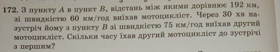 2) 192 - 30 = 162 (км) - расстояние между мотоциклистами на момент когда выехал 2 мотоциклист