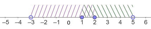 Щоб зобразити проміжки на числовій прямій, спочатку нарисуємо числову пряму. Потім позначимо точки -3, 2, 1 і 5 .