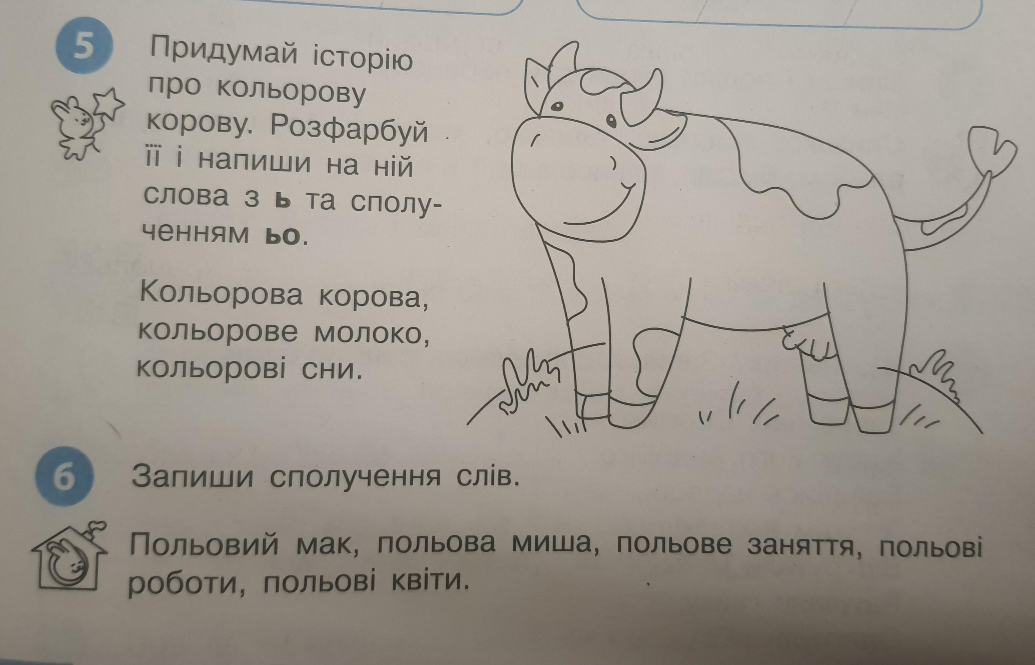 Жила собі кольорова корова. Вона їла зелену траву та давала кольорове молоко. А в ночі вона бачила кольорові сни. кулька, пальто, лялька, батько льон, кольоровий, польовий, бадьорий.