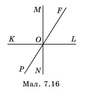 Прямі KL, MN i PF перетинаються в точці О, причому КL перпендикулярна MN (мал. 7.16). Знайдіть: 1) КОР, якщо <NOF=140⁰;