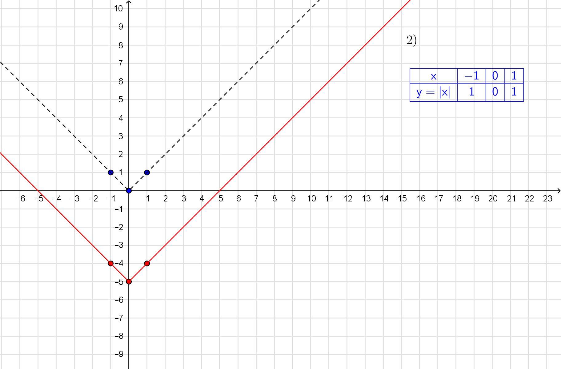Графік функції y =|x|-5 можна отримати в результаті паралельного перенесення графіка функції y = |x| уздовж осі ординат на 5 одиниць униз.