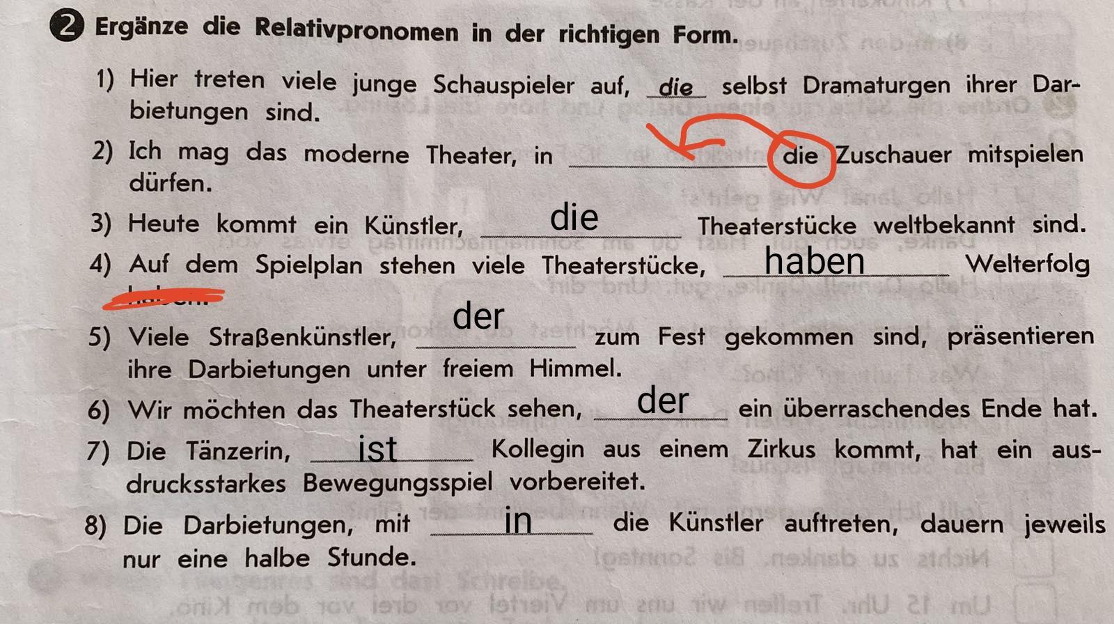 6) Wir möchten das Theaterstück sehen,