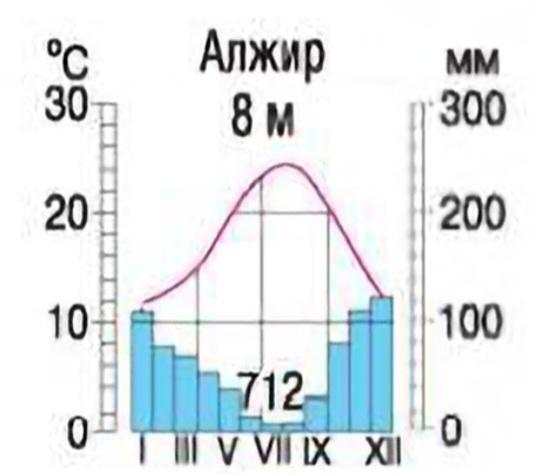 В межах Африки розрізняють середземноморський тип клімату на півночі (місто Алжир), на півдні (місто Кейптаун).