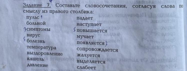 пульс повышается,больной жалуется,симптомы появляются,вирус слабеет,болезнь сопровождается,температура повышается,выздоровление наступает,кашель мучает,давление падает