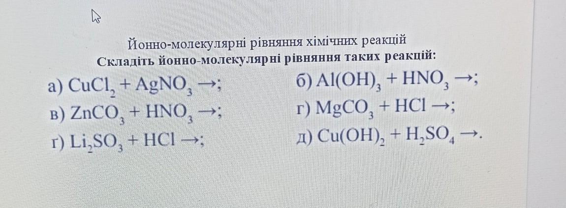 складіть іонно-молекулярні рівняння наступних реакцій: