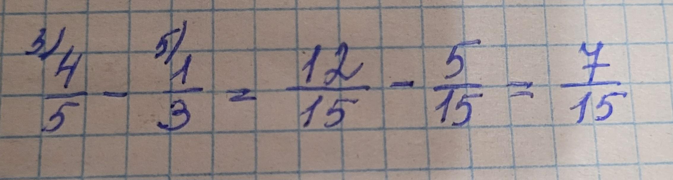4/5-1/3=3/15 отсюда ответ 1/15 или 0.2