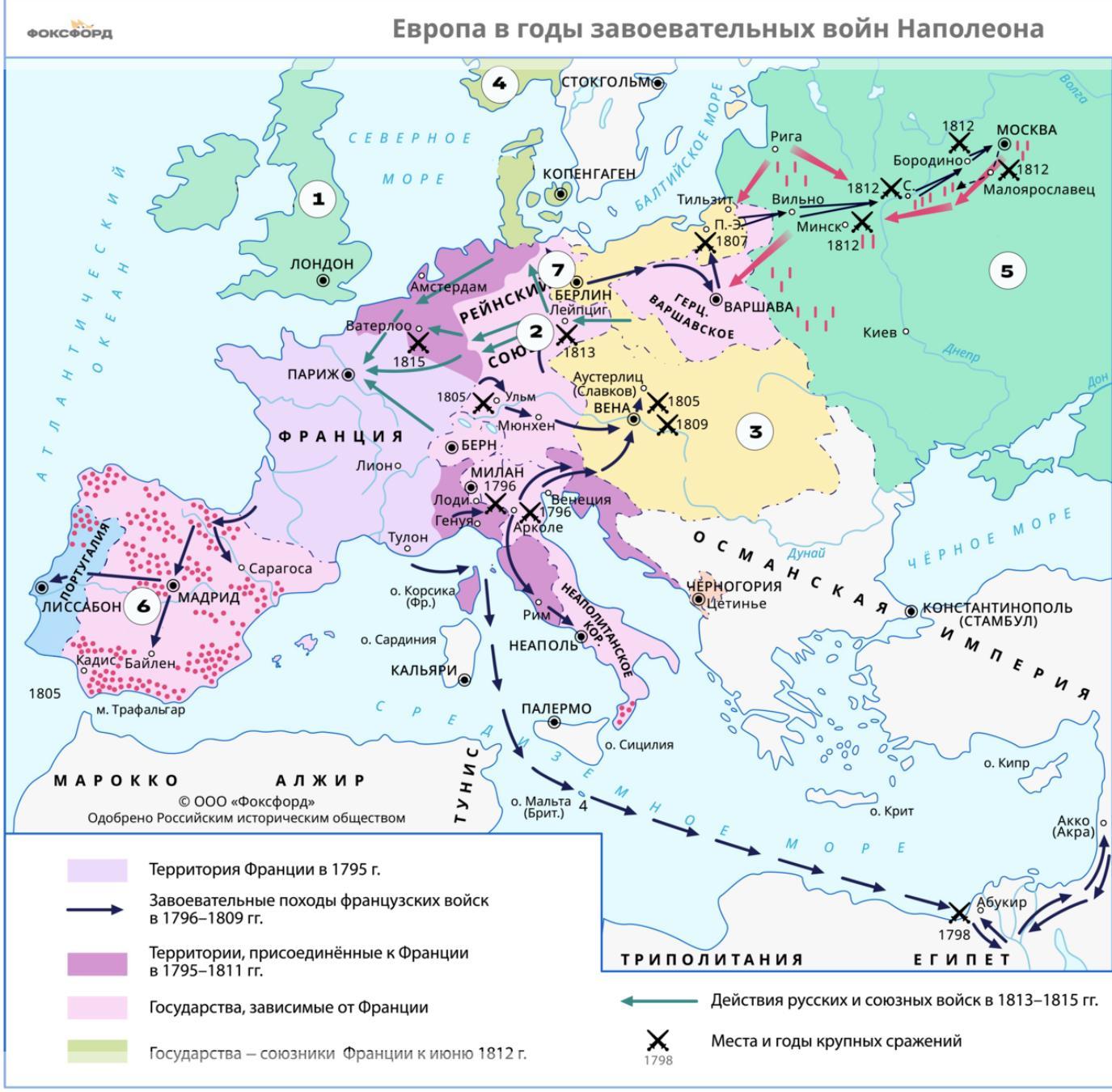 3. Армия государства, обозначенного цифрой «5», сумела вытеснить французские войска со своей территории