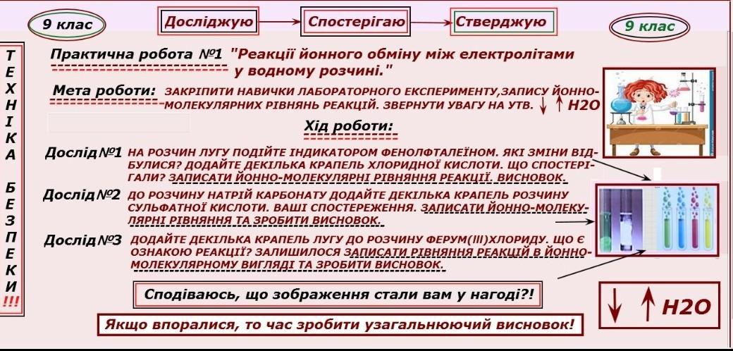 На розчин лугу подіяли індикатором фенолфталеїну, спостерігаємо зміну кольору на малиновий. Додаємо хлоридну кислоту: