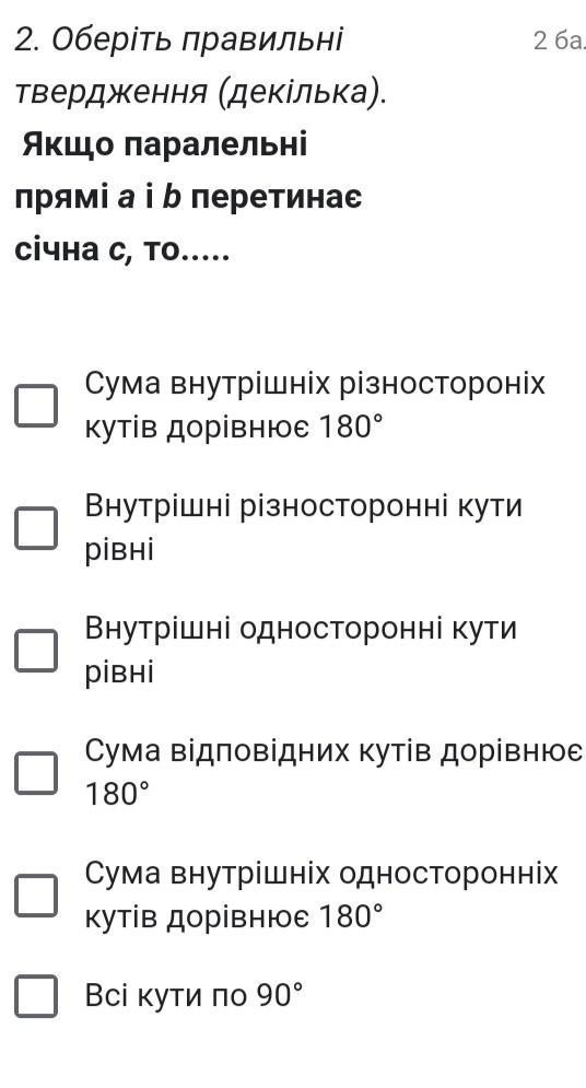 1. Сума внутрішніх різностороніх кутів дорівнює 180°.