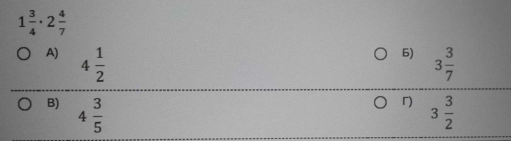 1 3/4 * 2 4/7 = 7/4 * 18/7 = 9/2 = 4 1/2