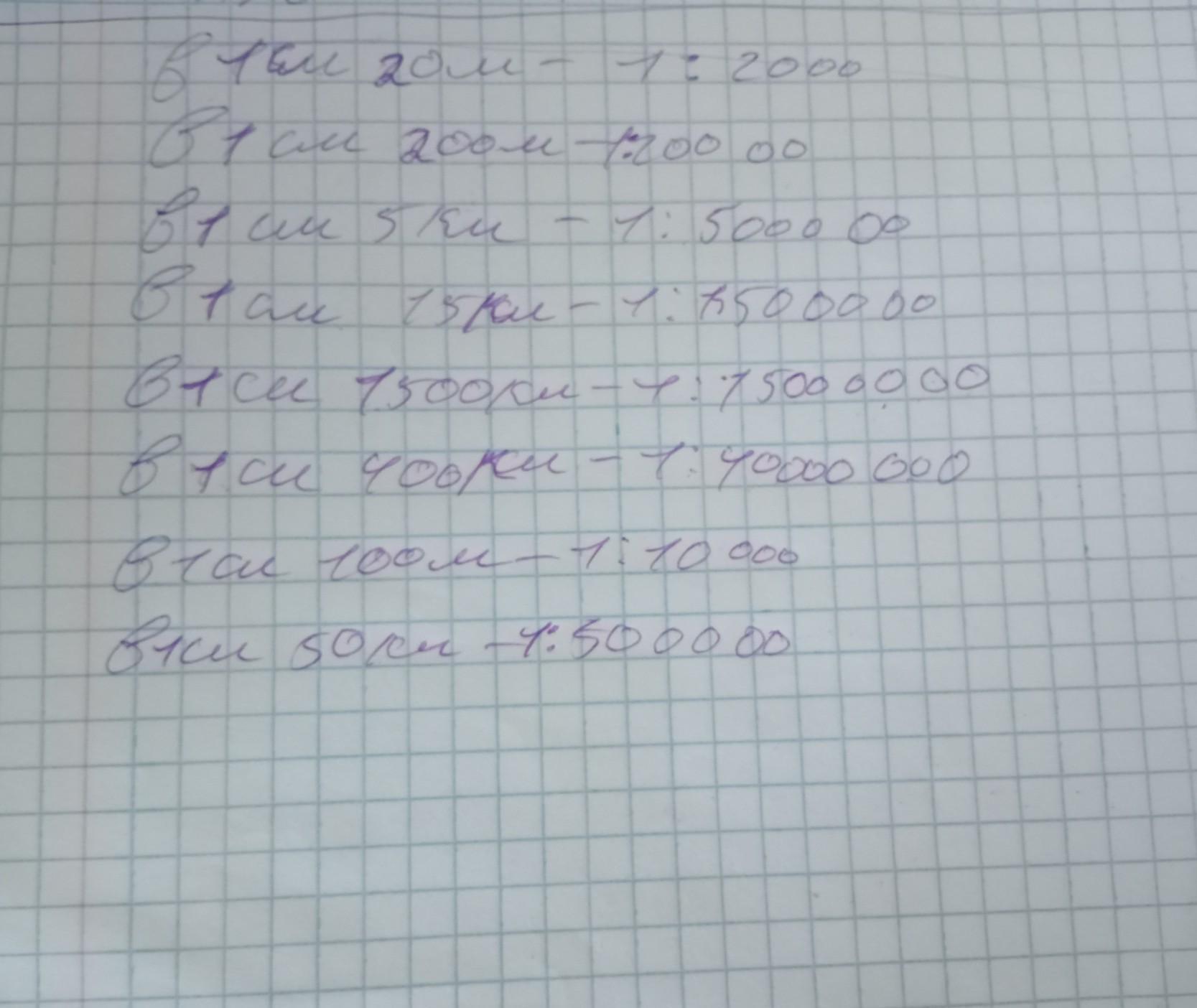 в 1 см 100 м - в 1 см 50 км -