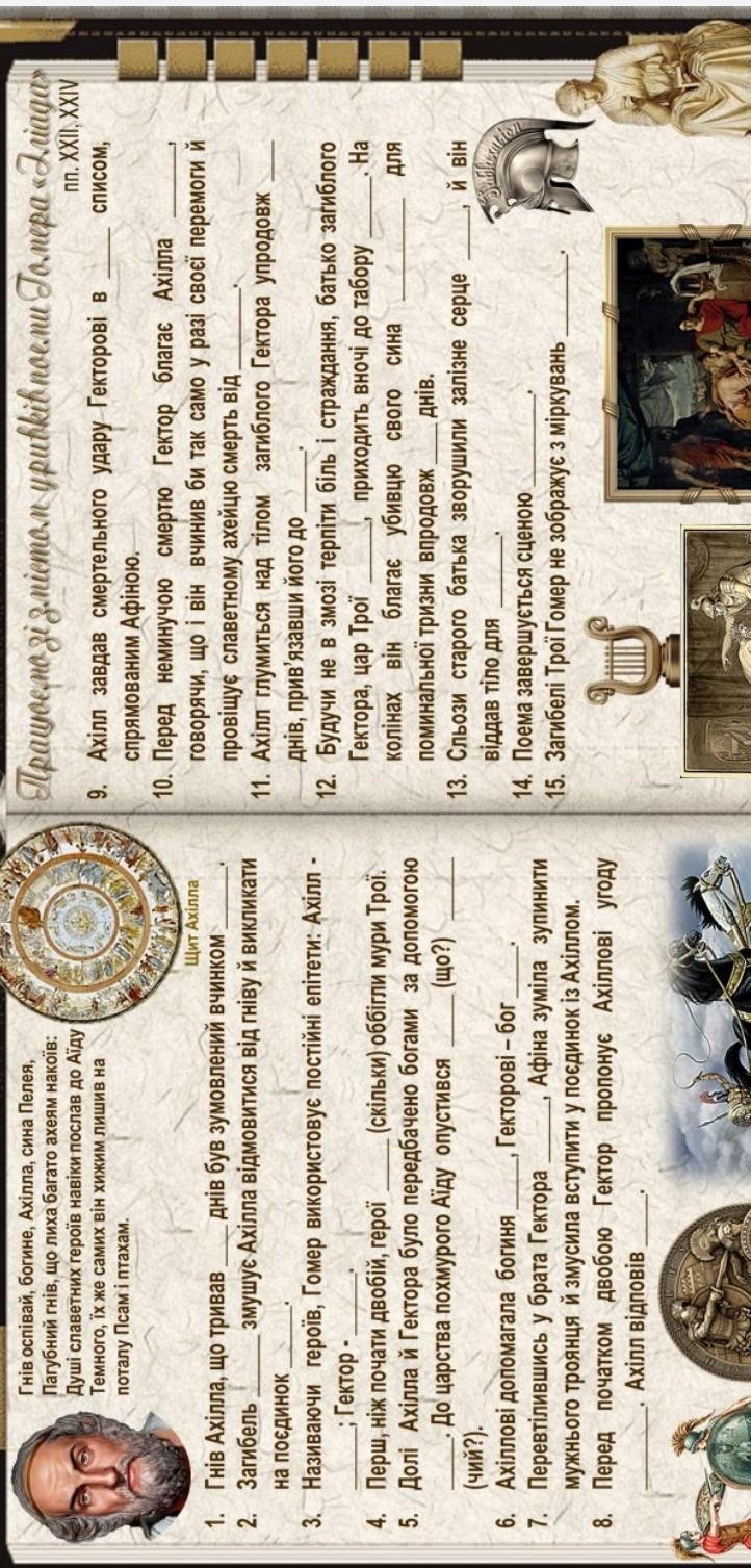 9. ахілл завдав смертельного удару гекторові вишию списом спрямованим афіною