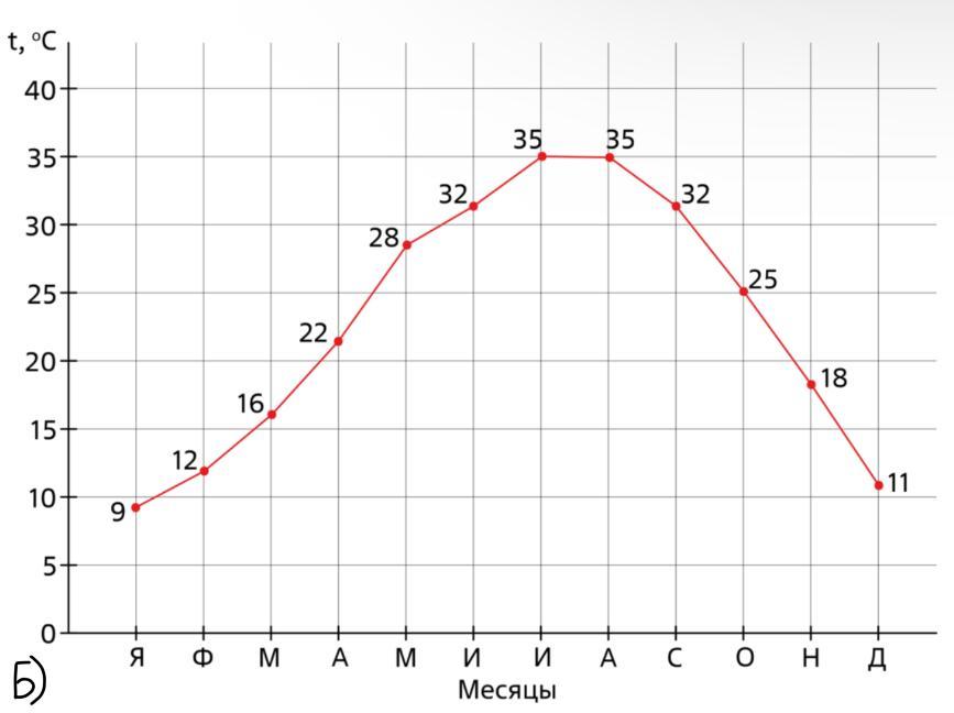 2. В Самая низкая температура состовляет 9 градусов. Самая высокая - 35. На основе этих данных найдем амплитуду температуры воздуха: