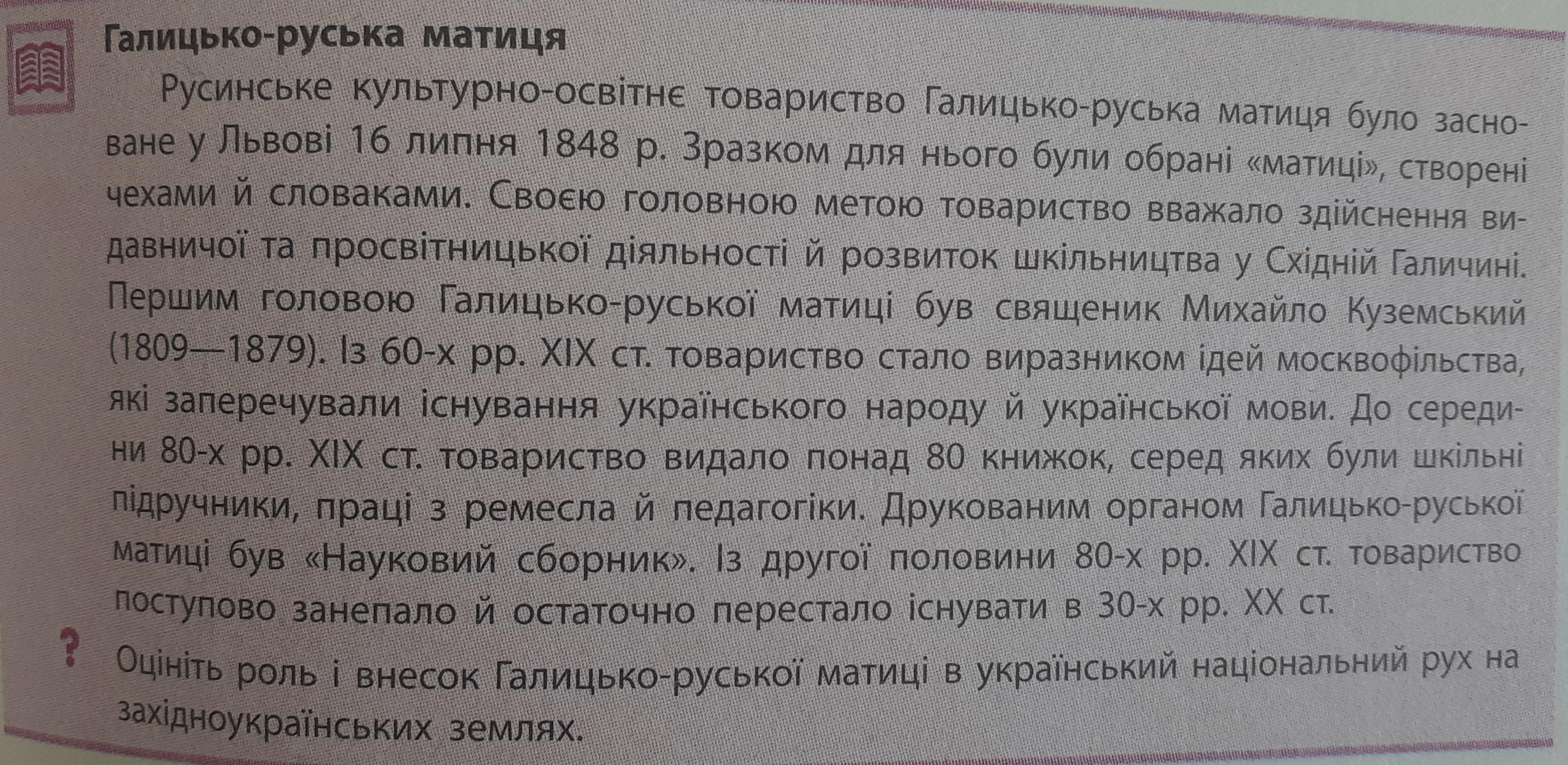 Оцініть роль і внесок Галицько-руської матиці в український національний рух на західноукраїнських землях.