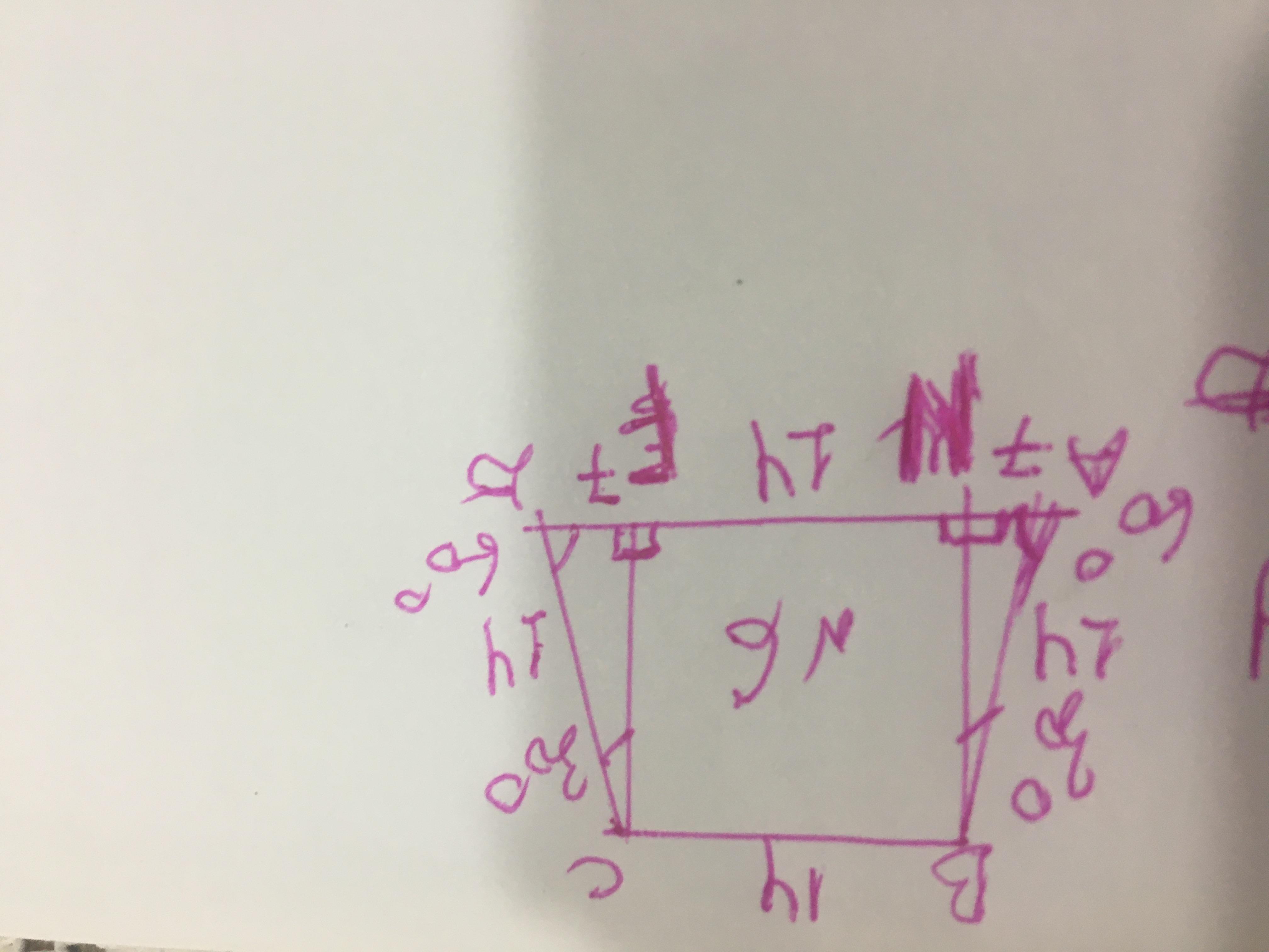 6) Діагоналі рівнобічної трапеції ділять середню лінію на три рівні частини, одна з яких дорівнює 7см. Знайдіть периметр трапеції, якщо кут між висотою, проведеною з вершини тупого кута та бічною стороною 30 градусів.