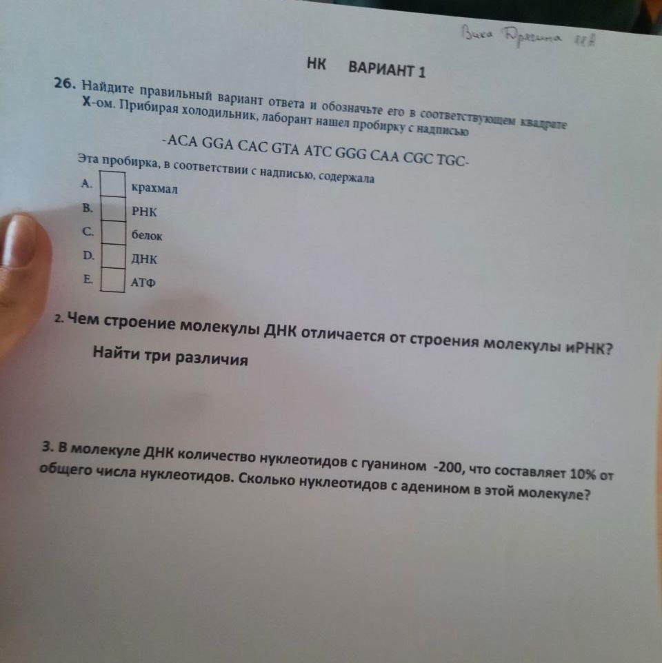 3. В этой молекуле ДНК 800 нуклеотидов с аденином.