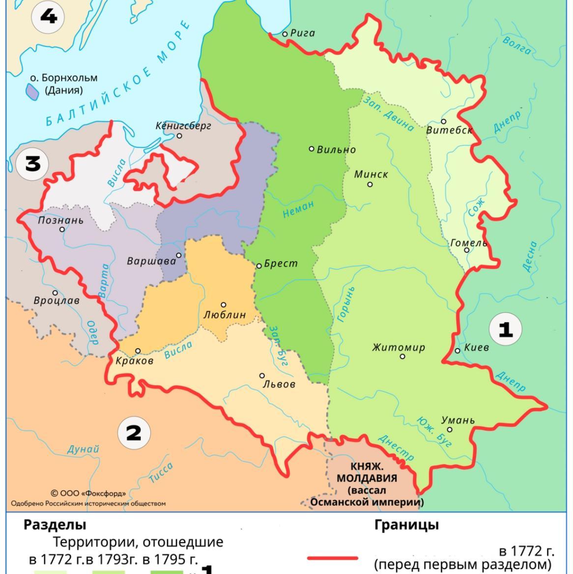 6. Территория, на которой расположена Варшава, вошла в состав государства, обозначенного цифрой «2»