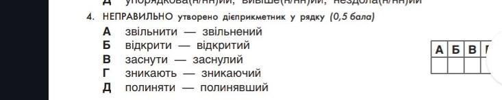 4. НЕПРАВИЛЬНО утворено дієприкметник у рядку (0,5 бала)