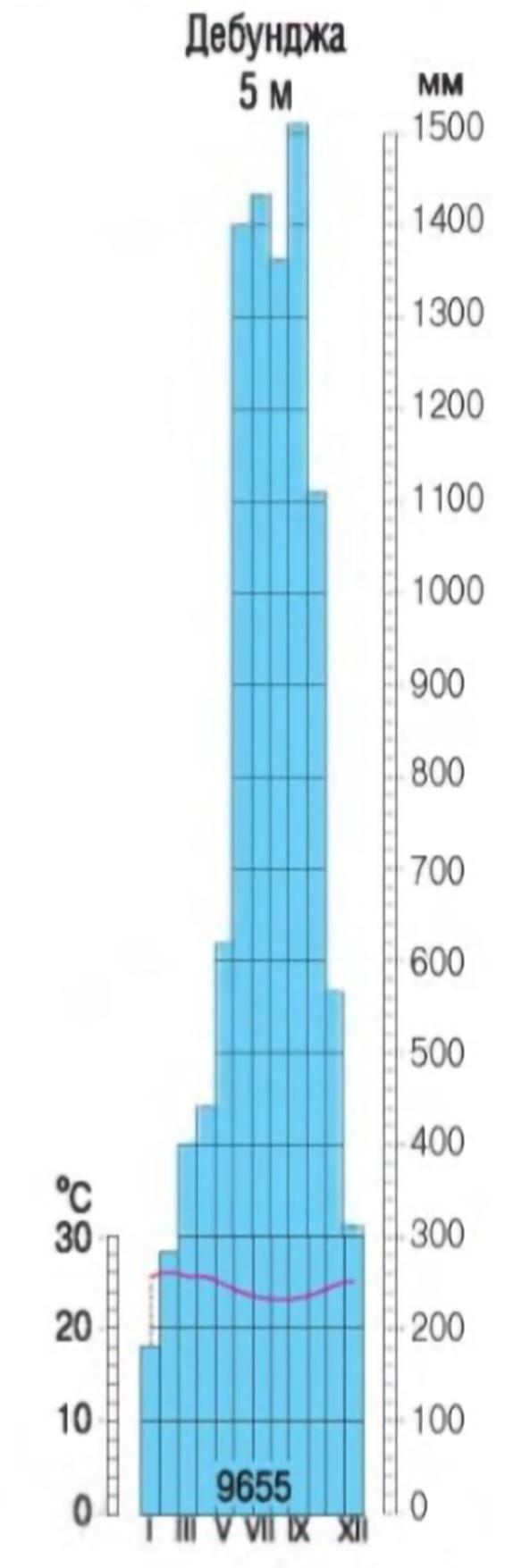 3.Найбільша кількість опадів в Африці випадає в передмісті міста Дебунджа ( див. підручник ст 63 Дай відповідь по кліматодіаграмі цього міста. Скільки опадів випадає за рік в м. Джебунджа?