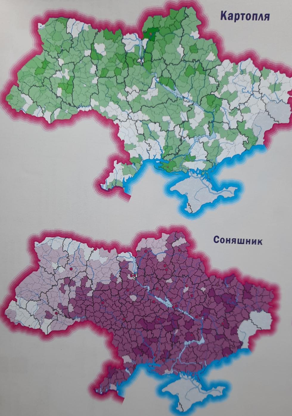 - Зернові культури: Харків, Полтава, Вінниця, Житомир, Київ, Одеса
