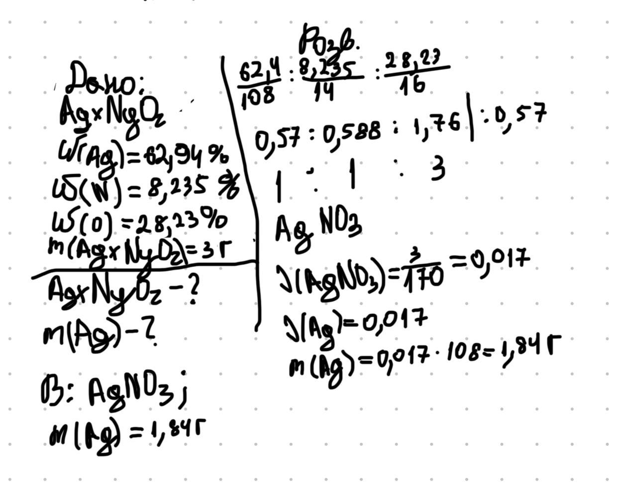 1. Масова частка срібла (Ag) в ляпісі дорівнює 62,94%, що означає, що в 100 г ляпісу є 62,94 г срібла.