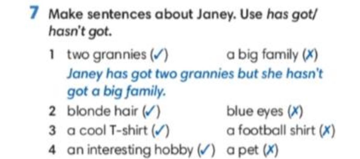 Ответ:2) Janey has got blonde hair but she hasn’t got blue eyes.