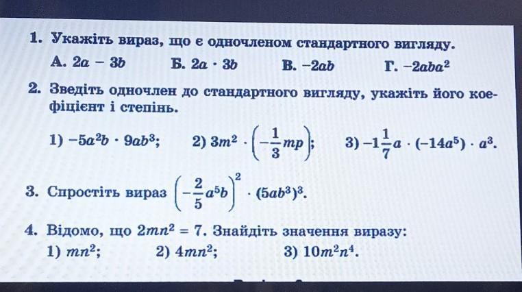 2. Зведіть одночлен до стандартного вигляду, укажіть його коефіцієнт і степінь.