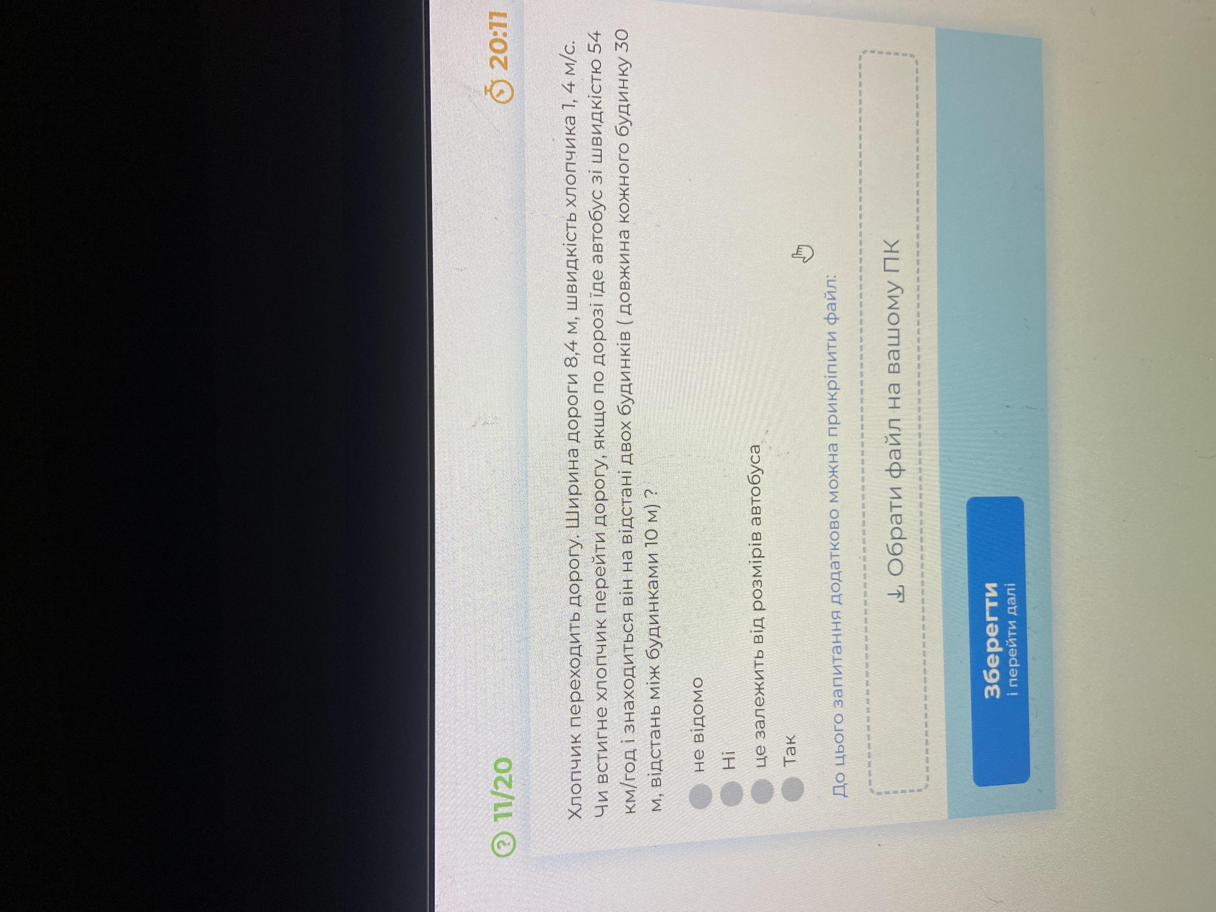 перед автобусом не встигне перейти, тому що автобус до умовної зустрічі вже проїде повз хлотчика ΔL=υ₂*Δt=15*1,3=19,5 м (максимальна довжина автобуса 12 м)