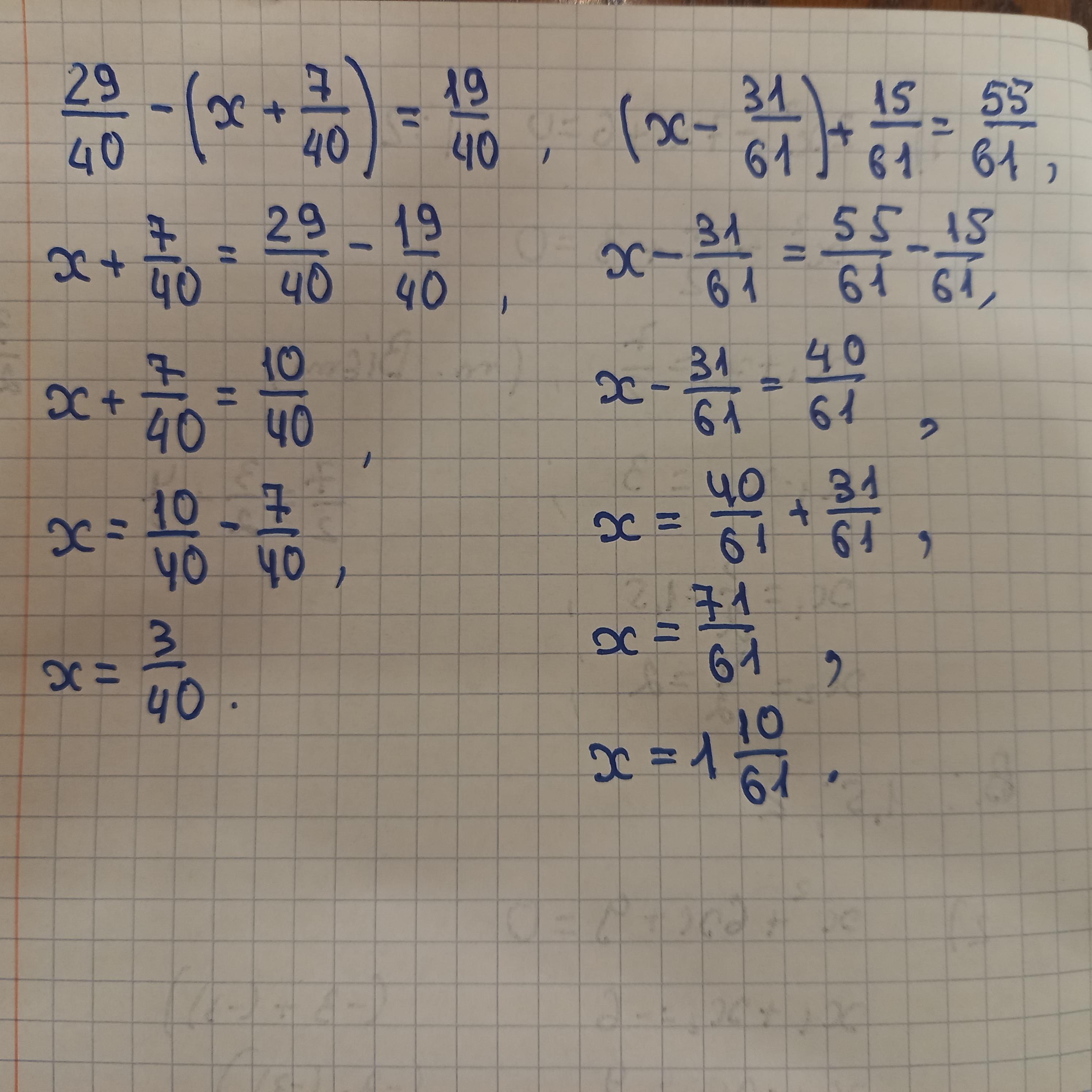 1) 29 - (40х + 7) = 19 (помножив все на 40)