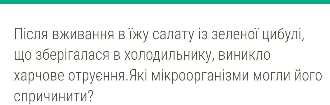 Харчове отруєння після вживання салату з зеленої цибулі, може бути спричинене бактеріями, такими як: Salmonella, Escherichia coli (E. coli) або Listeria monocytogenes.