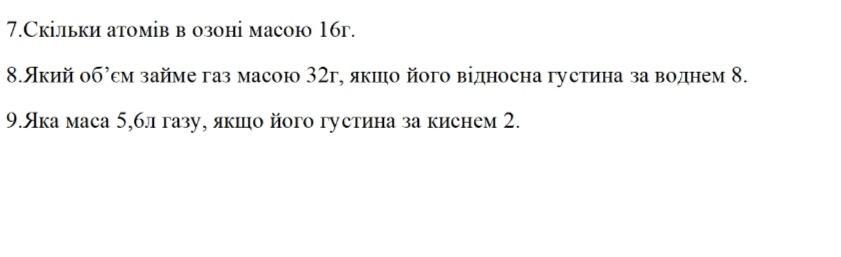7. Для розрахунку кількості атомів в озоні масою 16 г необхідно використовувати молярну масу озону та постійну Авогадро.